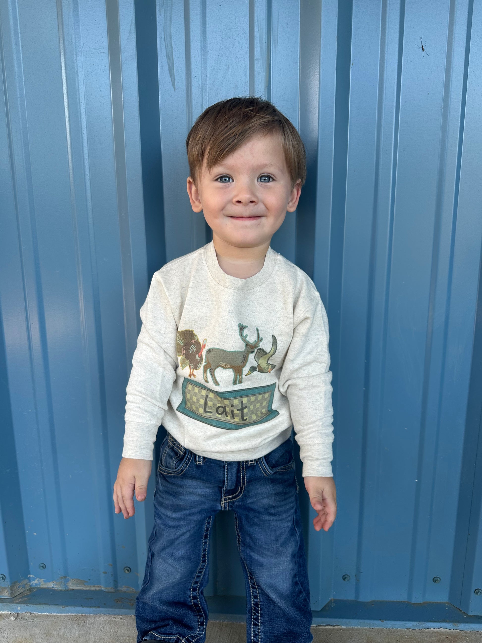 Crewneck season is here! A Hunter’s crew personalized with your little hunter’s name! Available in bubble rompers, tees, or crewnecks. Please specify child’s name in checkout order notes. 10 bus day turn around time.