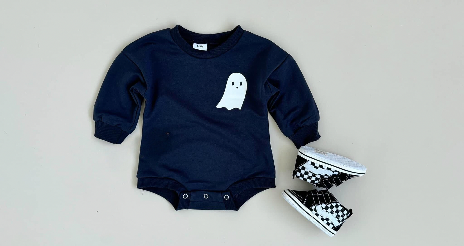Elevate your child's style with the Cool Ghost Romper. This trendy romper showcases a playful ghost design, perfect for this holiday season. Made with high-quality materials, it offers both comfort and lasting durability. Keep your little one looking cool and cute in this must-have romper.
