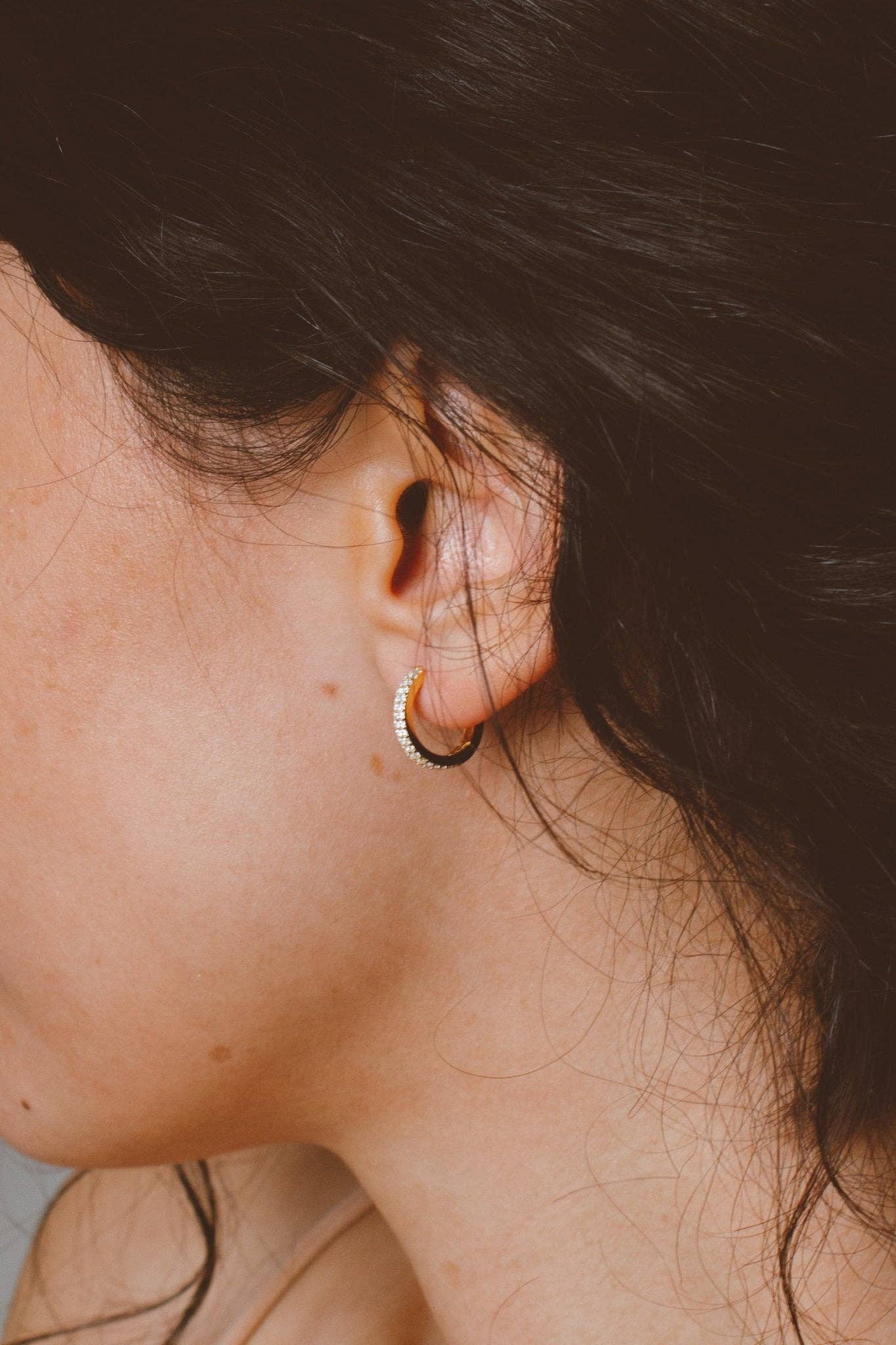 Sayyyyy hello to your new favorite everyday hoops!! These are the daintiest most perfect hoop for everyday wear and they are 13mm wide! They are made out of 925 sterling silver, 18k gold plated with little rhinestones on the front! These ones have 2 rows of crystals for a little extra sparkle!!