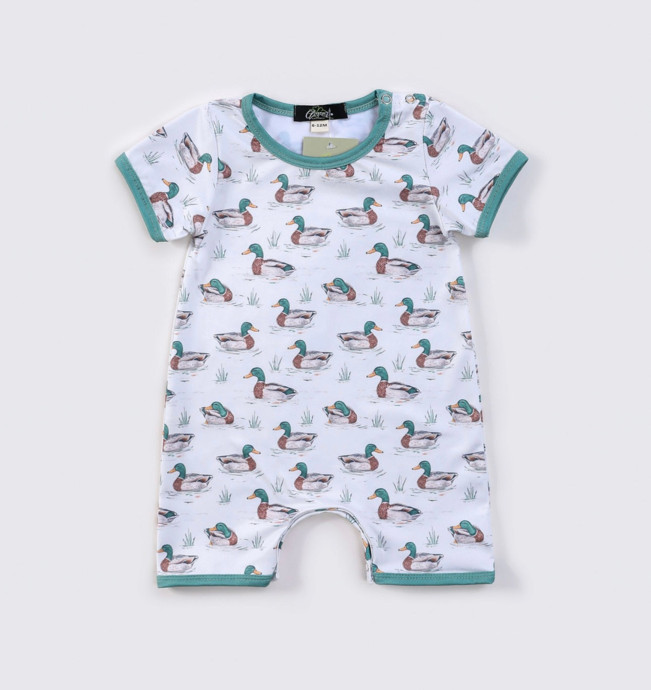 This boy's romper features a charming mallard design that is perfect for any little one. Crafted with comfort in mind, this romper is made with high-quality materials and offers a unique and stylish look. Add a playful touch to your child's wardrobe with this adorable mallard romper.