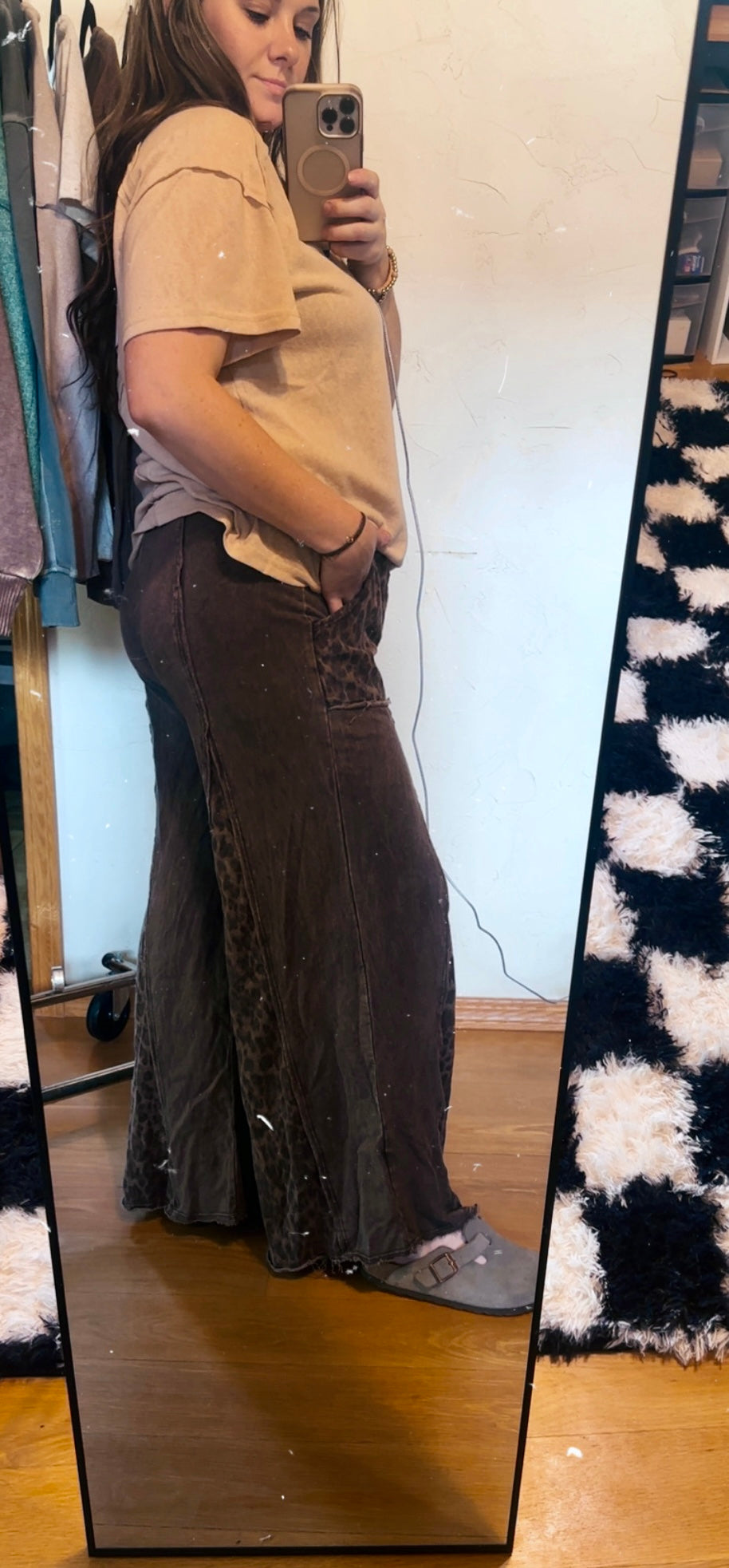 Mineral Washed Leopard Animal Print Flare Pants