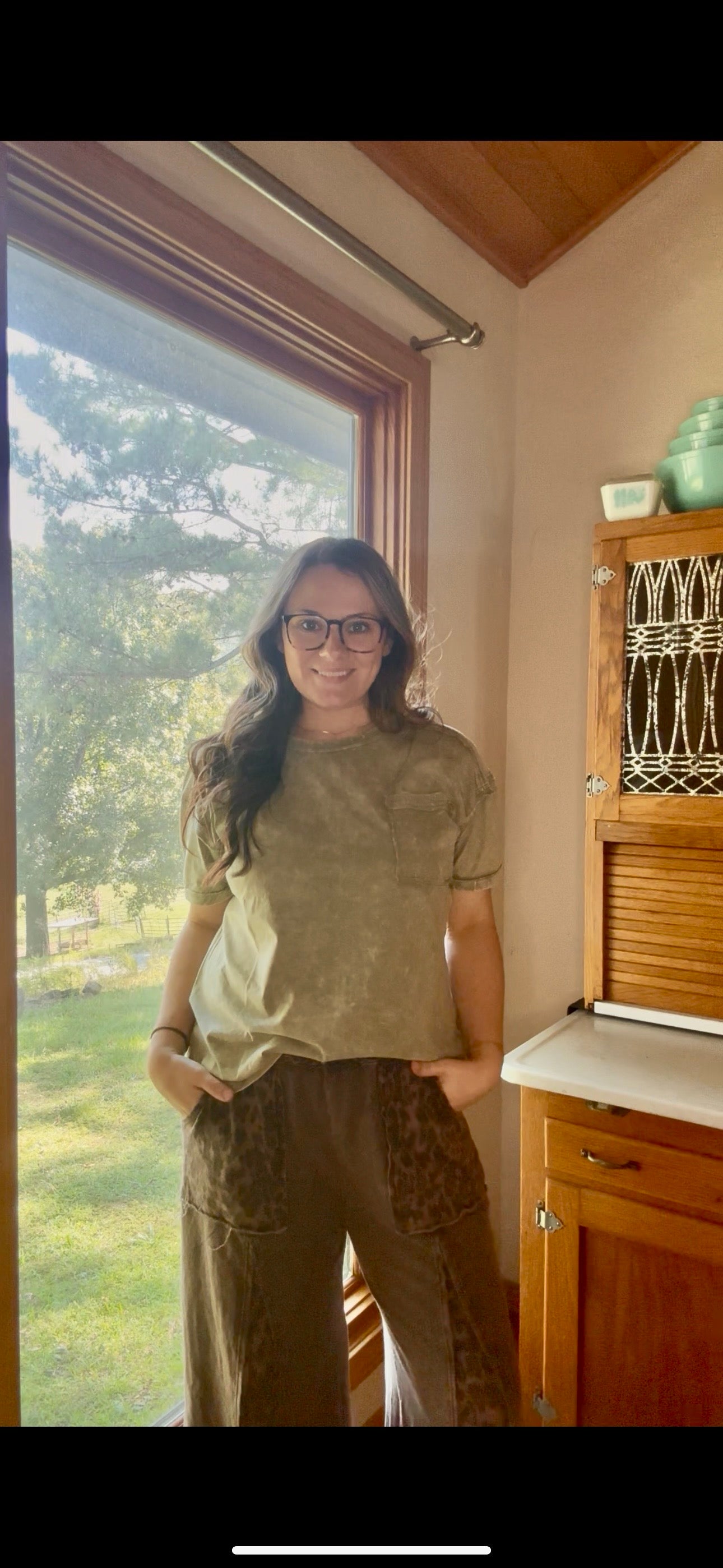 acid washed round neck zenana olive