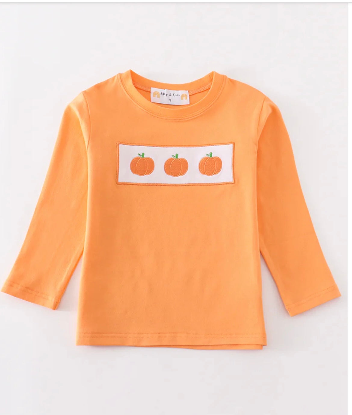 Elevate your child's autumn wardrobe with the Smock Pumpkin Long Sleeve. Crafted with a comfortable and durable fabric, this top features a charming boy pumpkin smock design. Keep your little one stylish and cozy all season long!