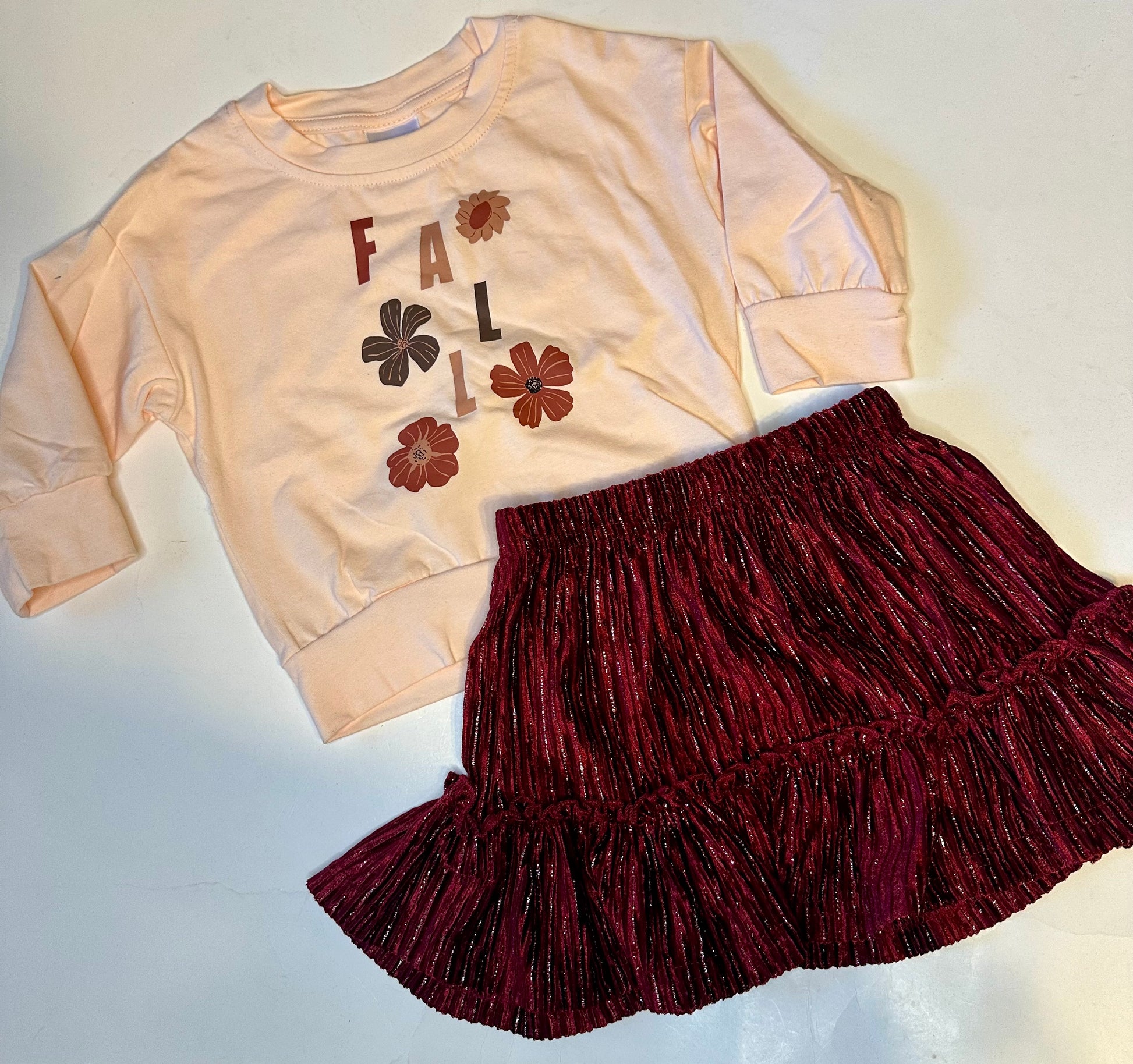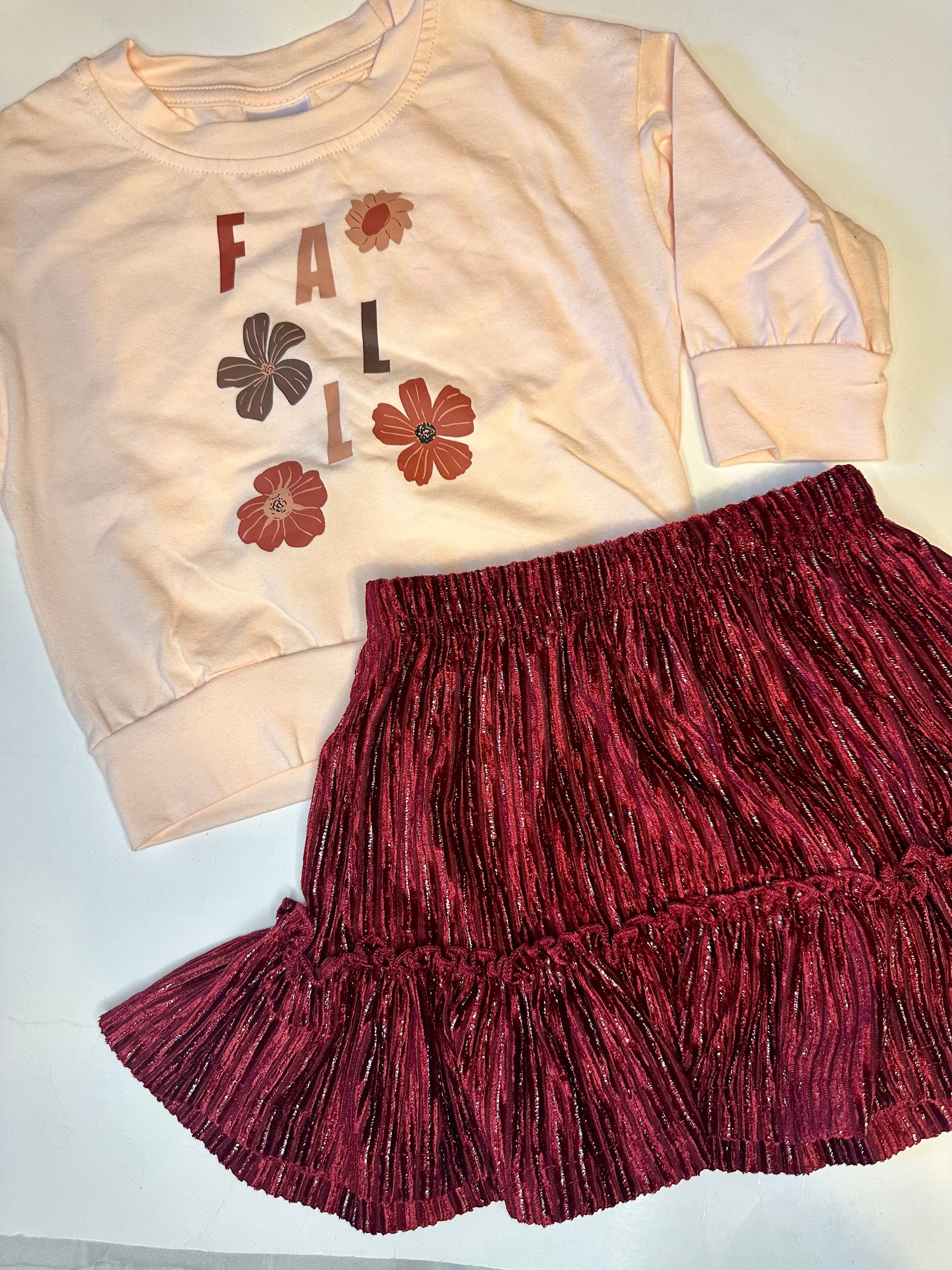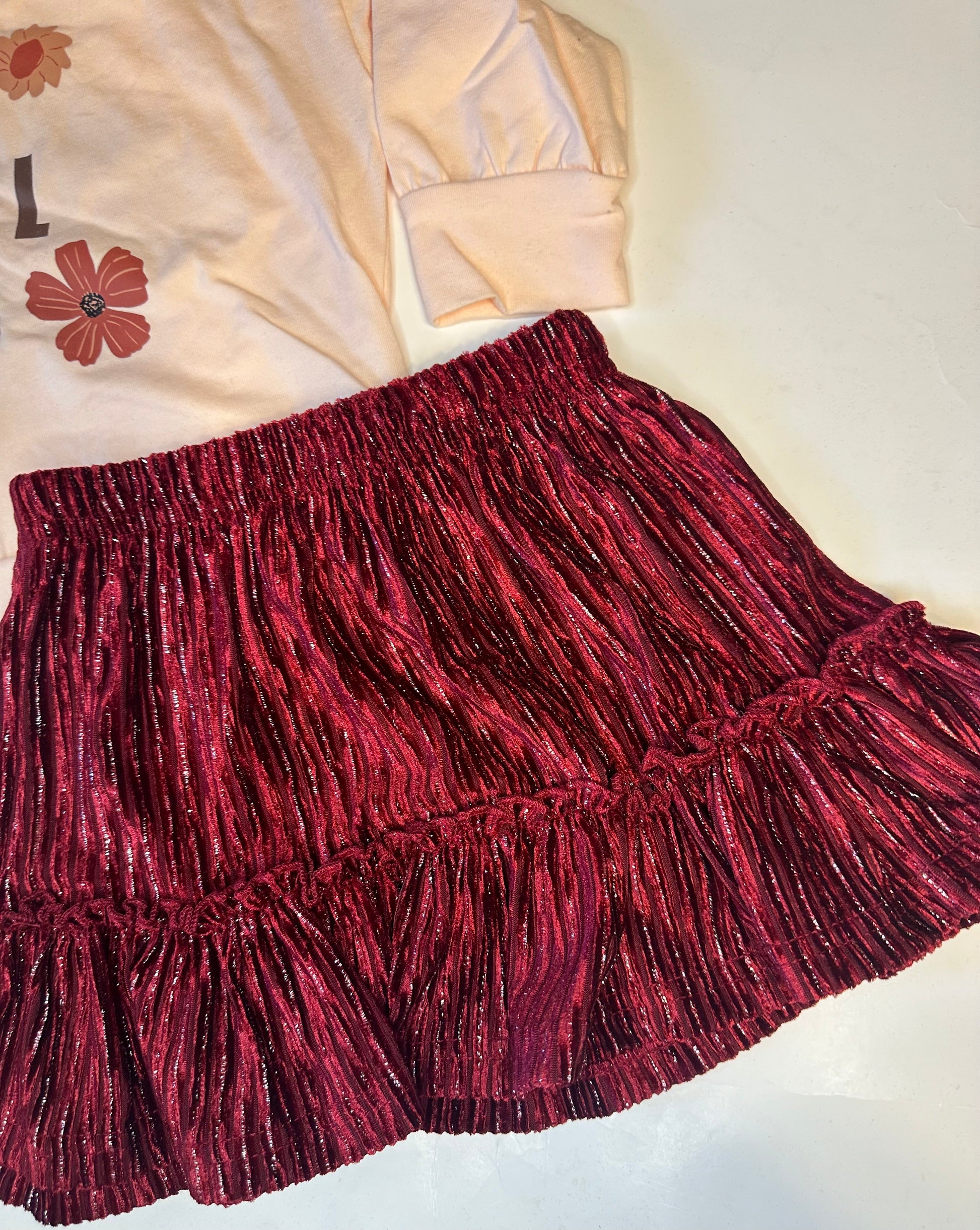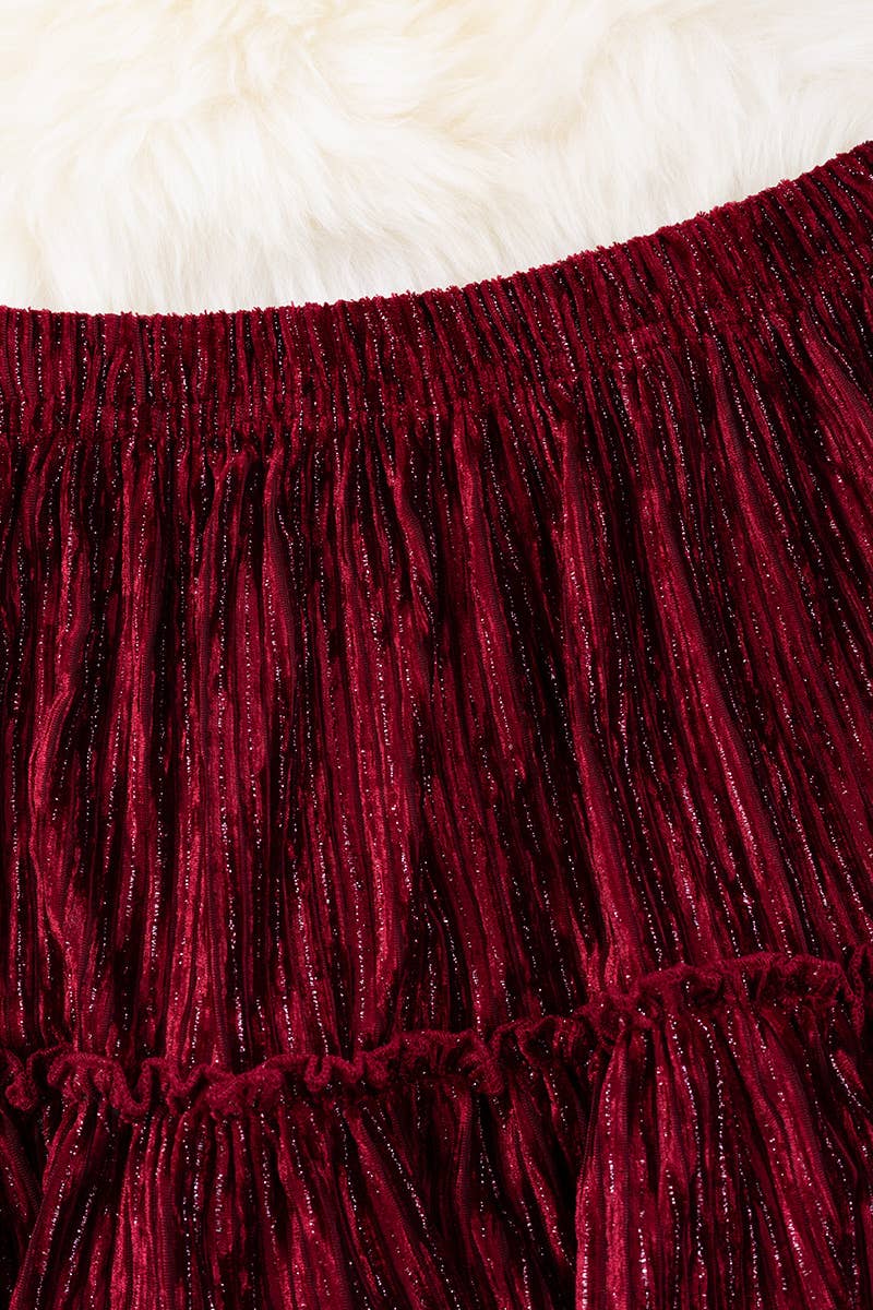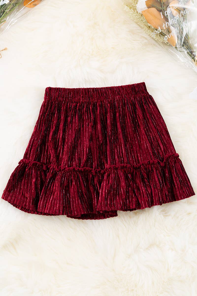 BURGUNDY SOFT VELVETY FABRIC RUFFLE SKIRT FOR GIRLS.