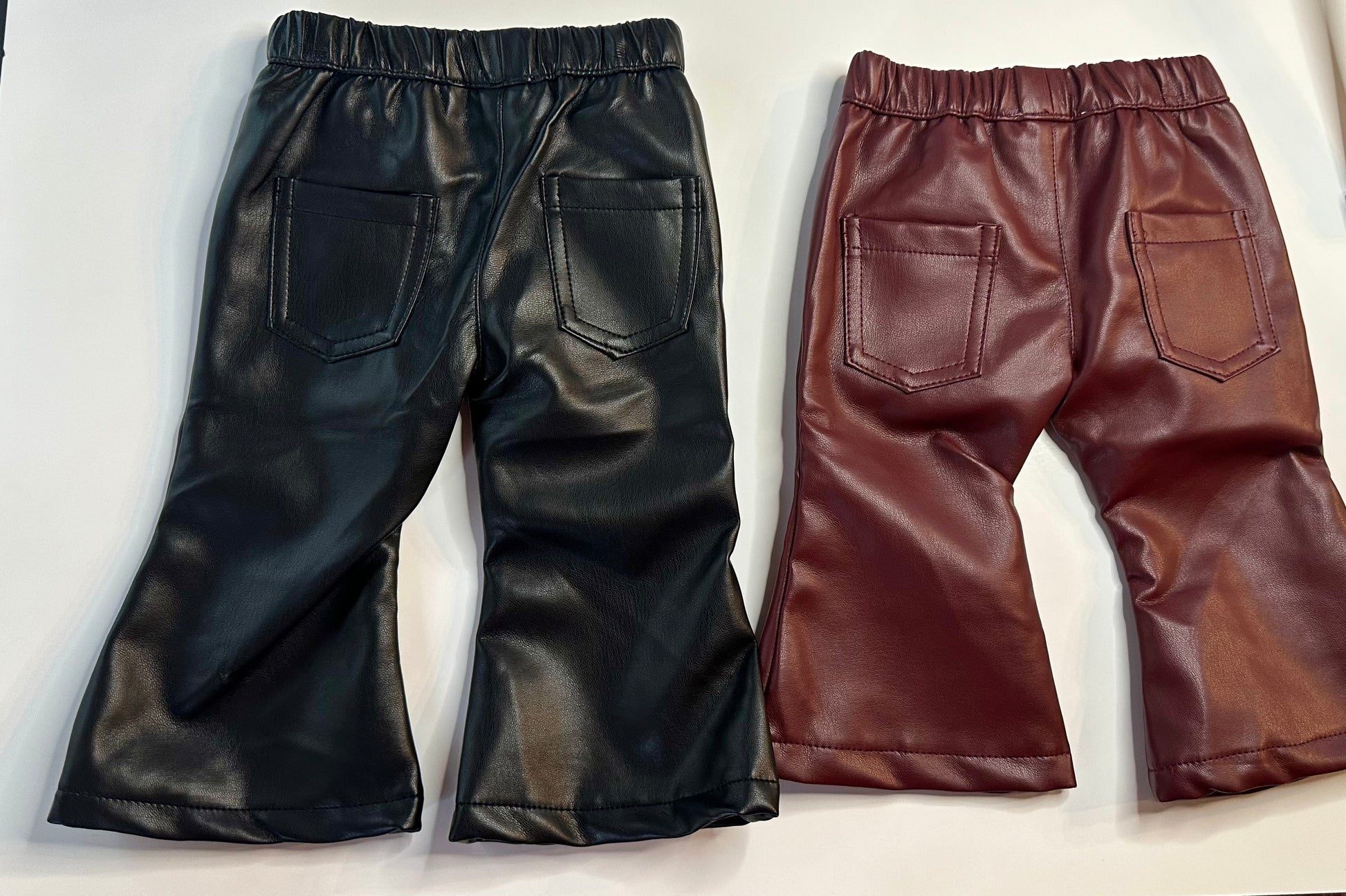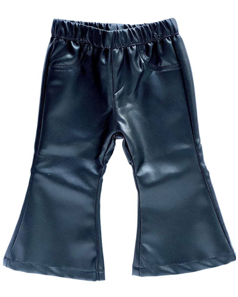 Retro, BB! Our fan favorite classic bell bottoms are now available in pleather! Pair with one of our tops or leos to bring your mini's style to the next level. This sweet style has an elastic band to make it an easy and comfortable must-have!