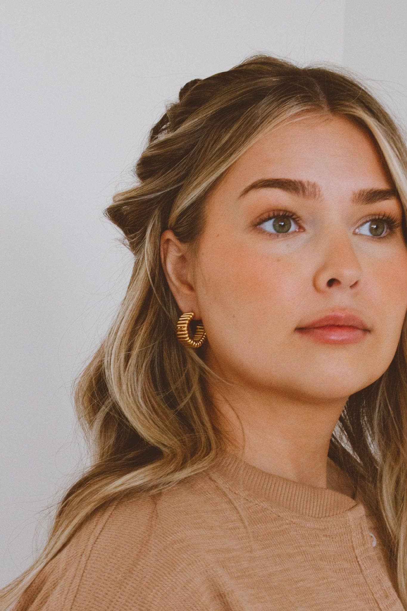 These hoops are just chic af. The post is hypoallergenic 925 sterling silver with 14k gold electroplating. They are beautiful, classy and just a perfect everyday hoop I know you will love. I love the chunky hoop look. These hoops are a little heavier than our dainty hoops!
